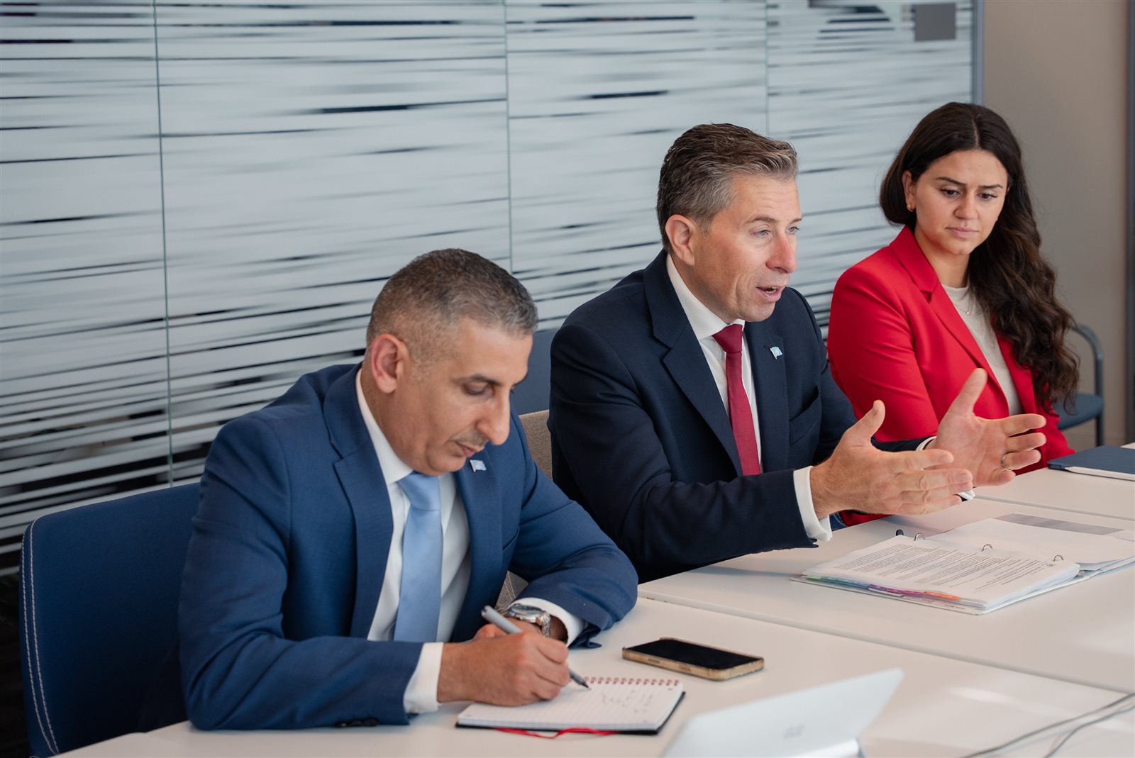 وبحث اللقاء التهديدات الحوثية المستمرة للسلم والأمن الدوليين، بدعم صريح من النظام الإيراني، من خلال الهجمات المتواصلة على خطوط الملاحة الدولية، والتخادم المتنامي بين المليشيات الحوثية والتنظيمات الإرهابية الأخرى، فضلًا عن تزايد المخاطر المترتبة على استمرار تدفق السلاح الإيراني إلى المليشيات الإرهابية.