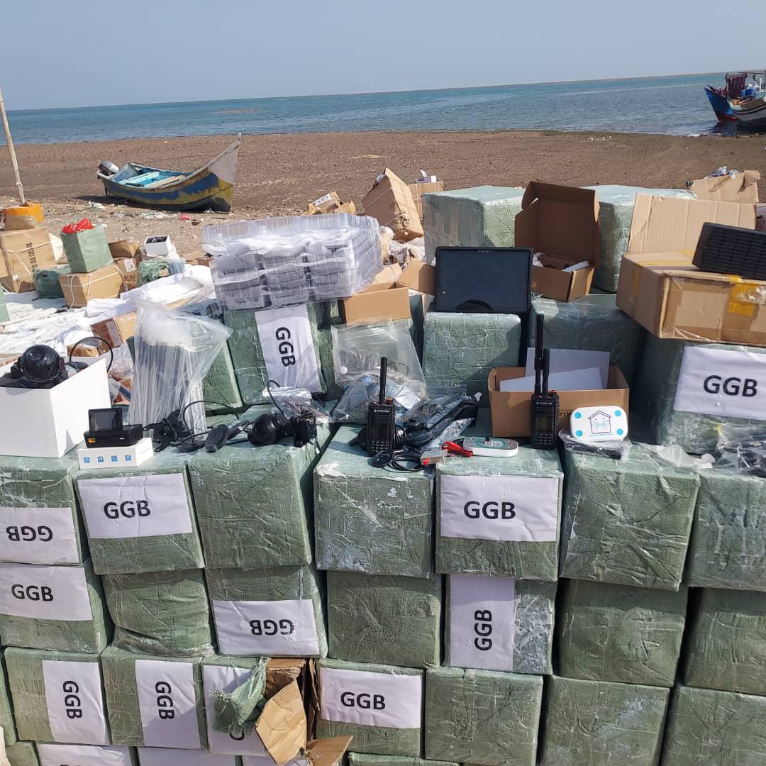 الحملة الأمنية بالصبيحة تضبط قارباً محملاً بمعدات وقطع خاصة بالطيران المسيّر للحوثيين