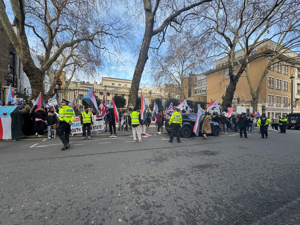 نظّم أبناء الجنوب المقيمون في المملكة المتحدة، اليوم، وقفة احتجاجية سلمية أمام مقر سفارة المملكة العربية السعودية في العاصمة البريطانية لندن، تعبيراً عن إدانتهم الشديدة للتصعيد العسكري والانتهاكات الجسيمة التي تستهدف الجنوب وقصف الطيران الذي طال محافظات حضرموت والمهرة والضالع، وسط مطالبات بتدخل دولي لحماية المدنيين.