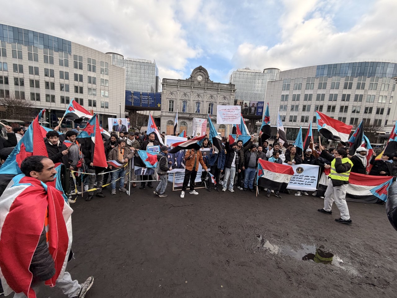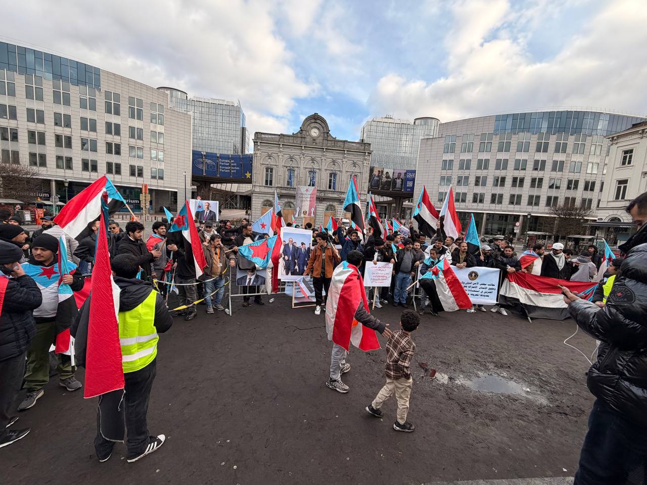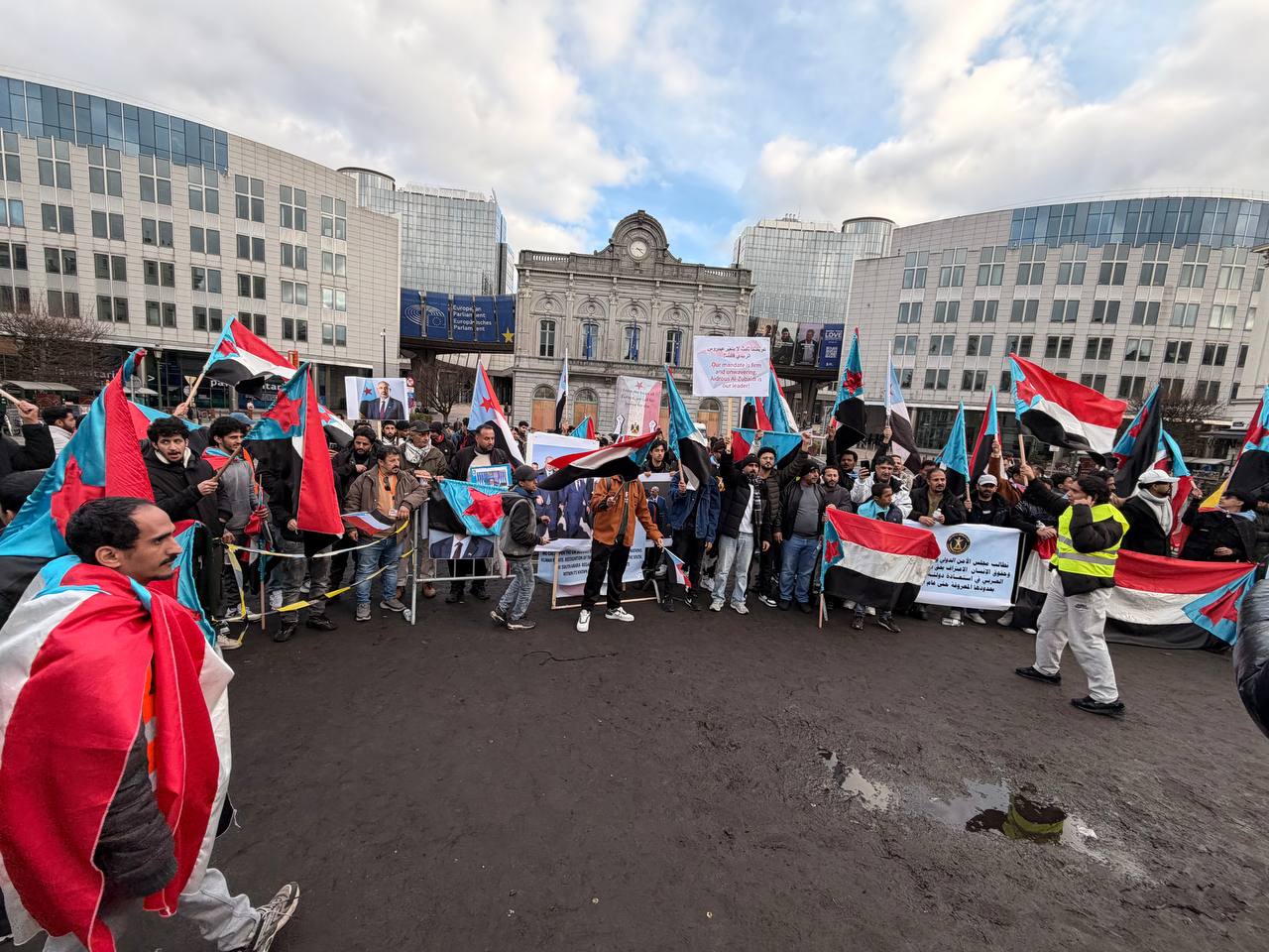 الجاليات الجنوبية تحتشد أمام البرلمان الأوروبي للمطالبة بالاستقلال وتندد بـ"الغدر السعودي" بحق القوات الجنوبية