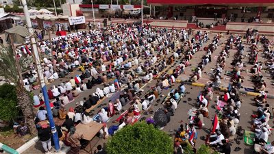 "حشود غفيرة تؤدي صلاة الجمعة في ساحة الاعتصام بالعاصمة عدن تحت شعار "الثبات والتمكين