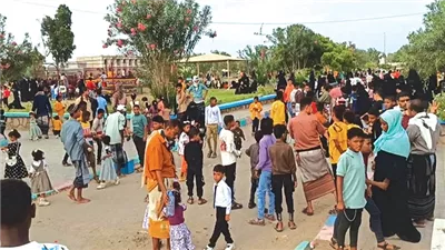 "تقرير" ساحة الشهداء بأبين تشهد إقبالاً كبيراً للمواطنين للاستمتاع بإجازة العيد