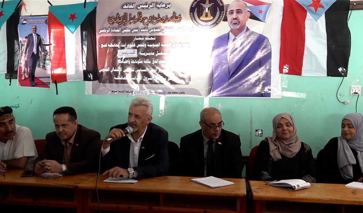 عقد فريق التواصل وتعزيز الوعي السياسي بالمجلس الانتقالي الجنوبي، برئاسة عضو هيئة الرئاسة، الدكتور عيدروس اليهري، لقاءً موسعاً بقيادتي وأعضاء الانتقالي والسلطة المحلية وأعضاء الجمعية الوطنية ومجلس المستشارين وشرائح المجتمع المدني في مديرية المسيمير بلحج.