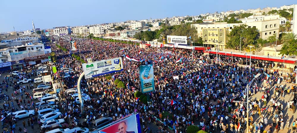 شاهد صور أولية من مليونية الوفاء والصمود في ساحة العروض بالعاصمة عدن