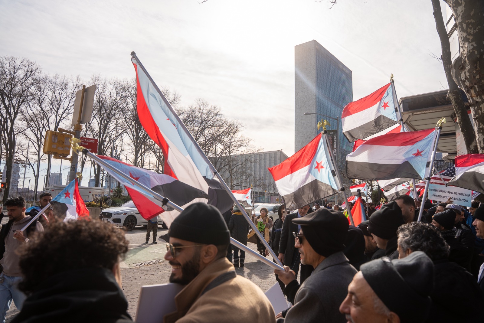 وقفة احتجاجية أمام مقر الأمم المتحدة في نيويورك للتنديد باستهداف الجنوب وقيادته السياسية والعسكرية