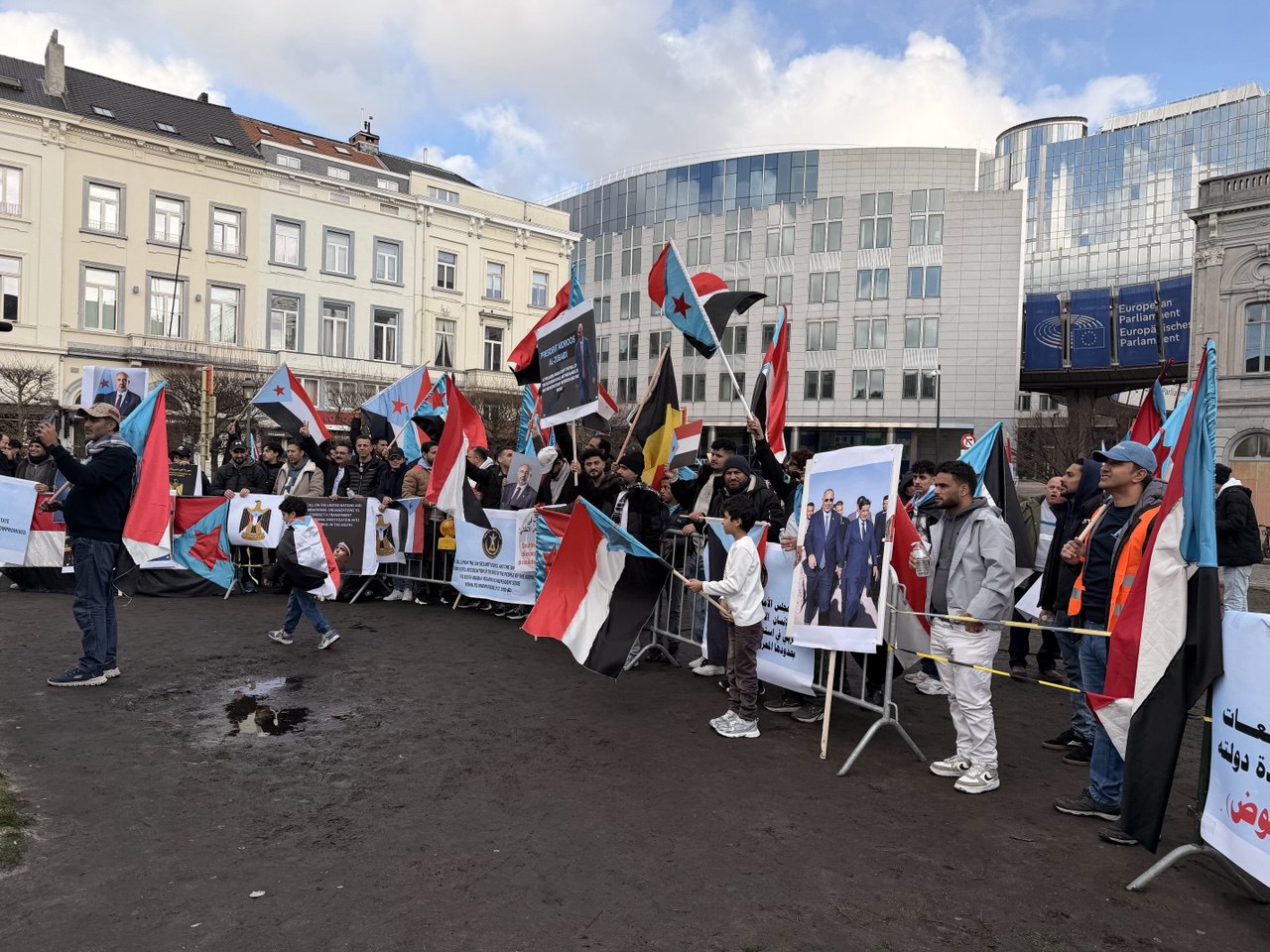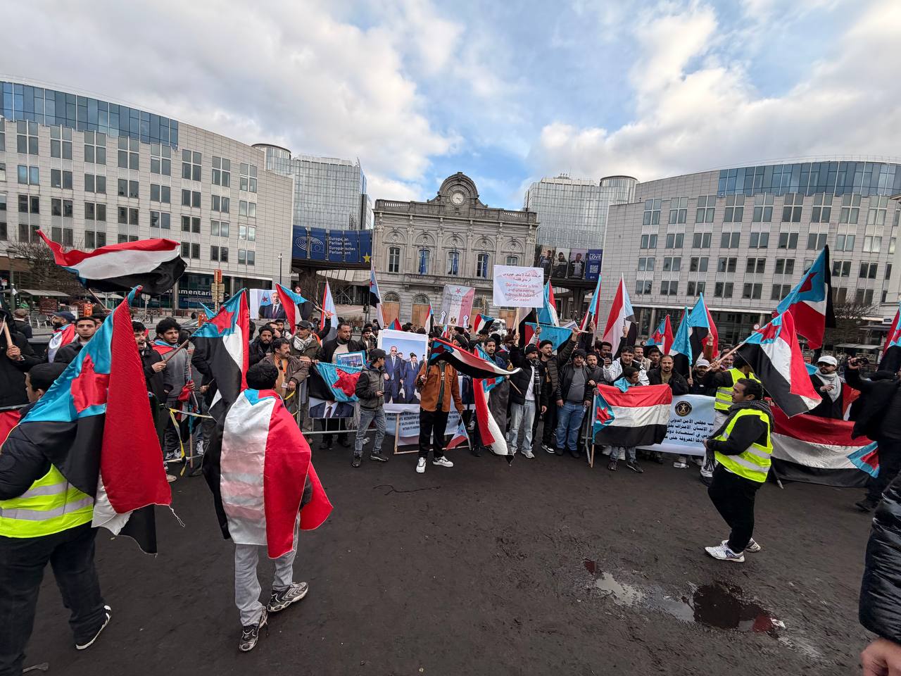 الجاليات الجنوبية تحتشد أمام البرلمان الأوروبي للمطالبة بالاستقلال وتندد بـ"الغدر السعودي" بحق القوات الجنوبية