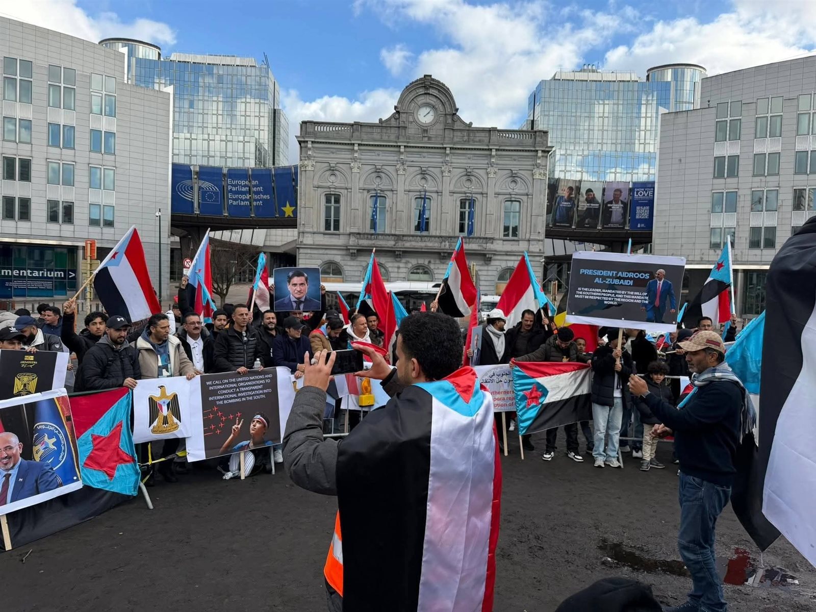 نظمت الجالية الجنوبية في مملكة بلجيكا، اليوم، فعالية جماهيرية حاشدة أمام مقر البرلمان الأوروبي في العاصمة بروكسل، بمشاركة واسعة من أبناء الجنوب العربي القادمين من مختلف دول القارة الأوروبية، لرفع صوت الشعب الجنوبي ومطالبه العادلة إلى مراكز صنع القرار الدولي.